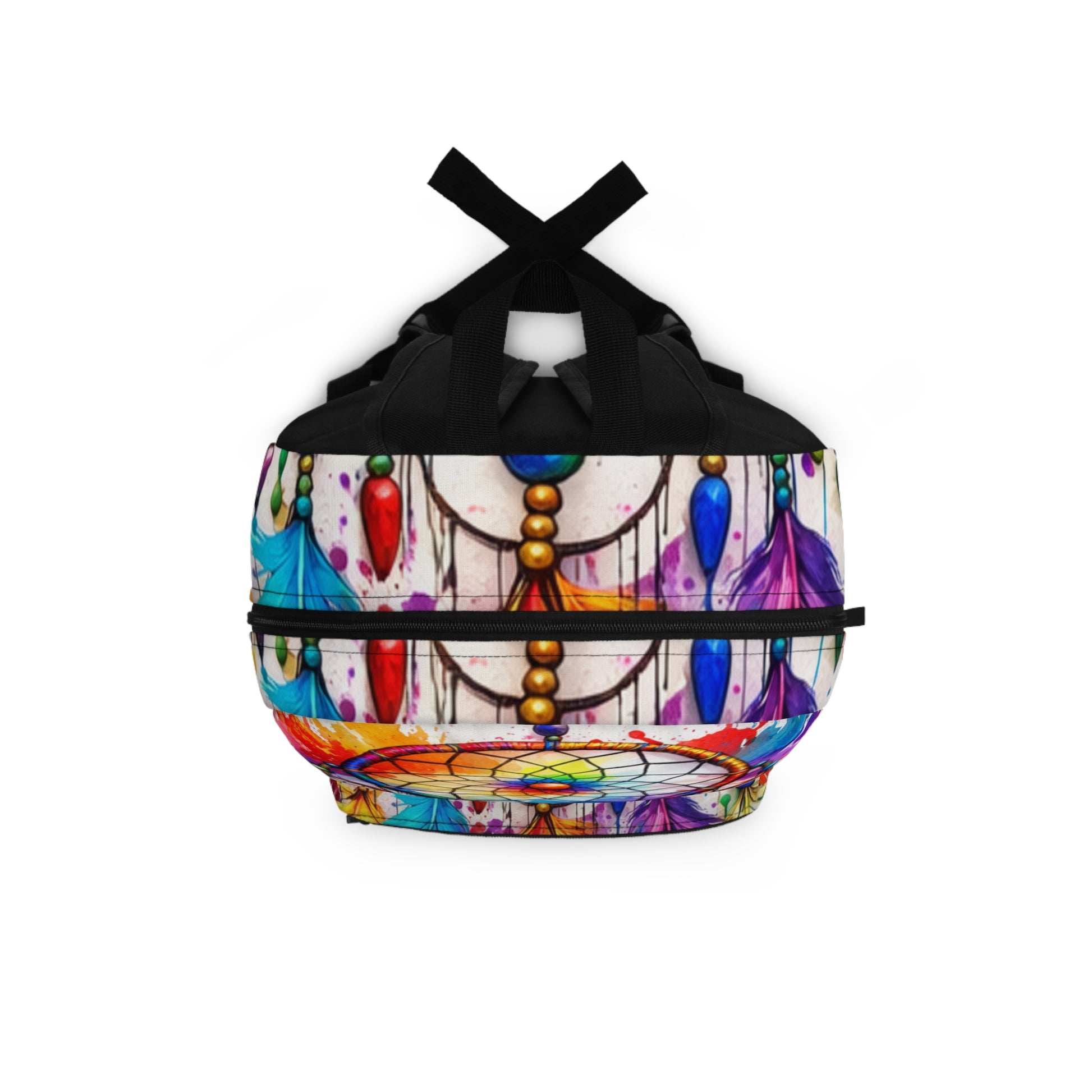 Carry vibrant spirit on the go with this backpack featuring a colorful Native American dream catcher in rainbow splash art on a clean white background. Crisp digital art designs add bold style, while roomy storage and comfy straps keep you ready for school, travel, and everyday adventures.