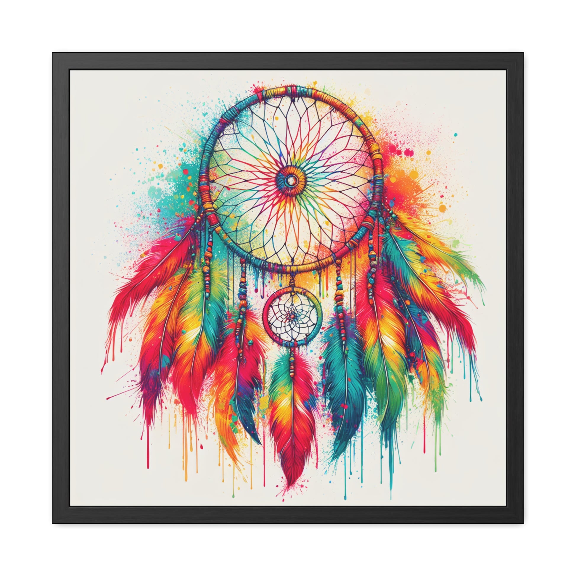 Introducing our stunning framed poster: Experience the mesmerizing beauty of a Colorful Native American Dream Catcher! Featuring rainbow colors with a vibrant splash art design, this digital masterpiece stands out against a clean white background. Perfect for adding a pop of artistry to any space. #NativeAmericanArt #DreamCatcher #RainbowColors #SplashArt #PosterDecor #FramedArt #WallArt #HomeDecor #ColorfulArt #DigitalArt