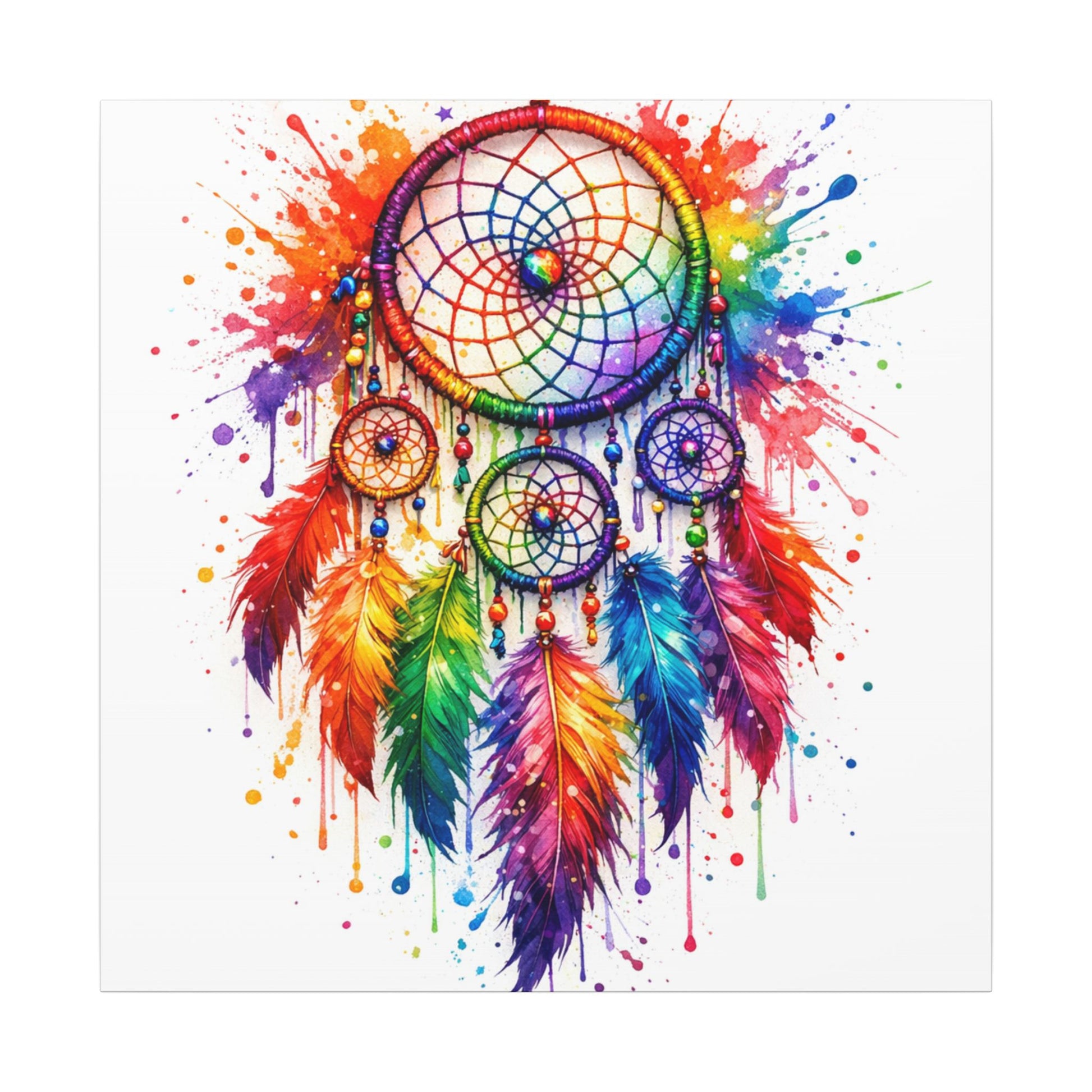Vibrant digital canvas featuring a colorful Native American dream catcher in rainbow hues and splash art detail on a crisp white background. A bold, modern statement piece that adds energy and cultural-inspired spirit to any room. #DreamCatcher #NativeAmericanArt #RainbowArt #SplashArt #DigitalArt #CanvasPrint #ColorfulDecor #BohoStyle #WallArt #HomeDecor