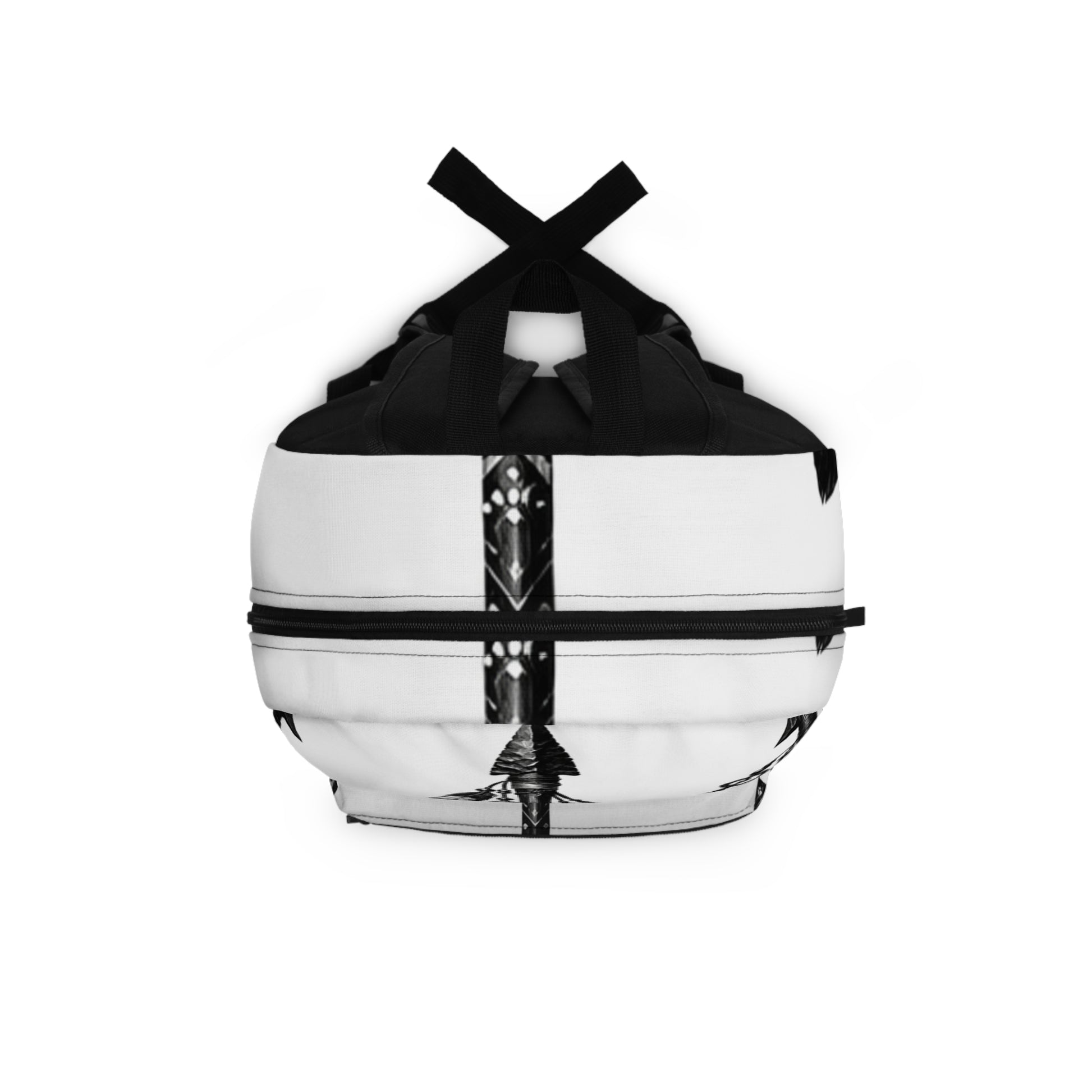 Stand out with this sleek backpack featuring black Native American arrow motifs on a crisp white background, rendered in bold digital art detail. Lightweight, durable, and ready for school, travel, or everyday carry with a modern tribal edge.